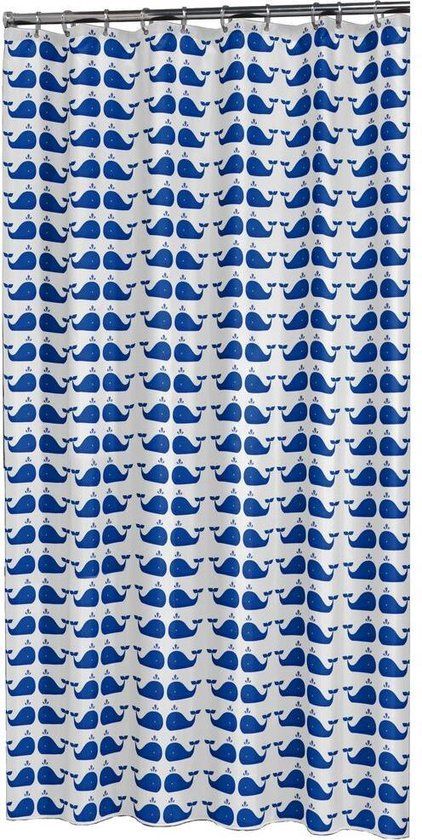 Sealskin Whale Douchegordijn 180x200 cm - Blauw/Wit - Douchegordijnen