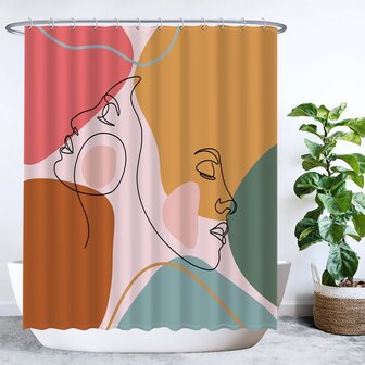 Ulticool Douchegordijn - Gezichten Abstract Aesthetic Emotie - 180 x 200 cm - Polyester - Bruin/Geel/Groen/Roze - Douchegordijnen