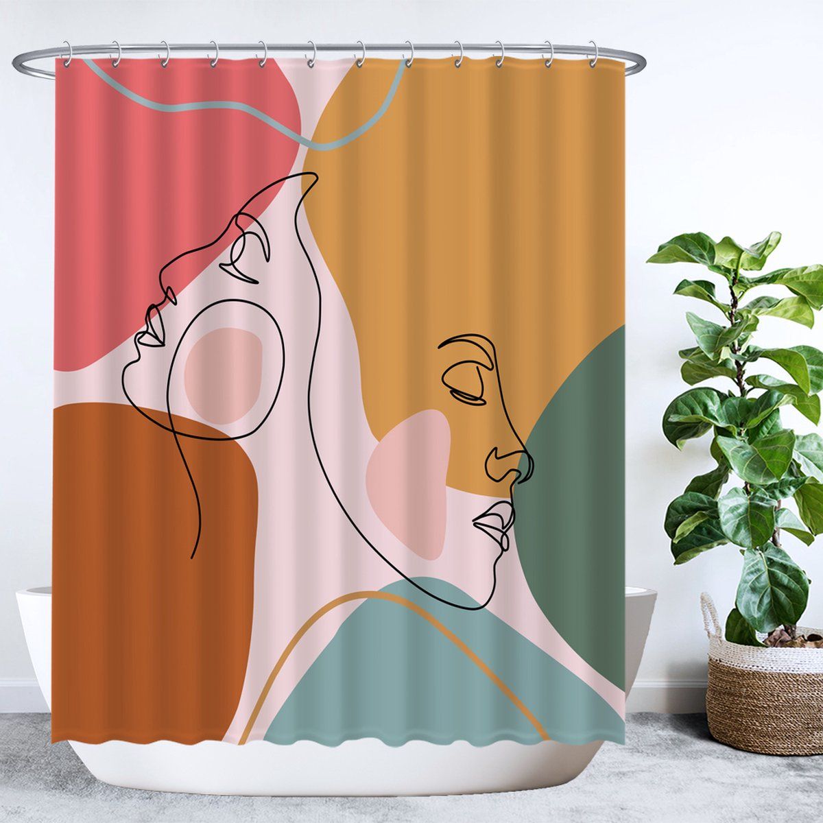 Ulticool Douchegordijn - Gezichten Abstract Aesthetic Emotie - 180 x 200 cm - Polyester - Bruin/Geel/Groen/Roze