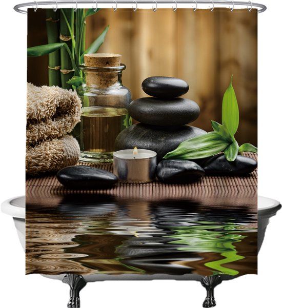 Ulticool Douchegordijn - Zen Spa Meditatie Rust - 180 x 200 cm - Bruin Groen Zwart - Douchegordijnen