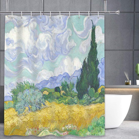 Bekijk product3BMT Douchegordijn - Korenveld met Cipressen Van Gogh - 180x200cm - Anti Schimmel - met Ringen - Douchegordijnen