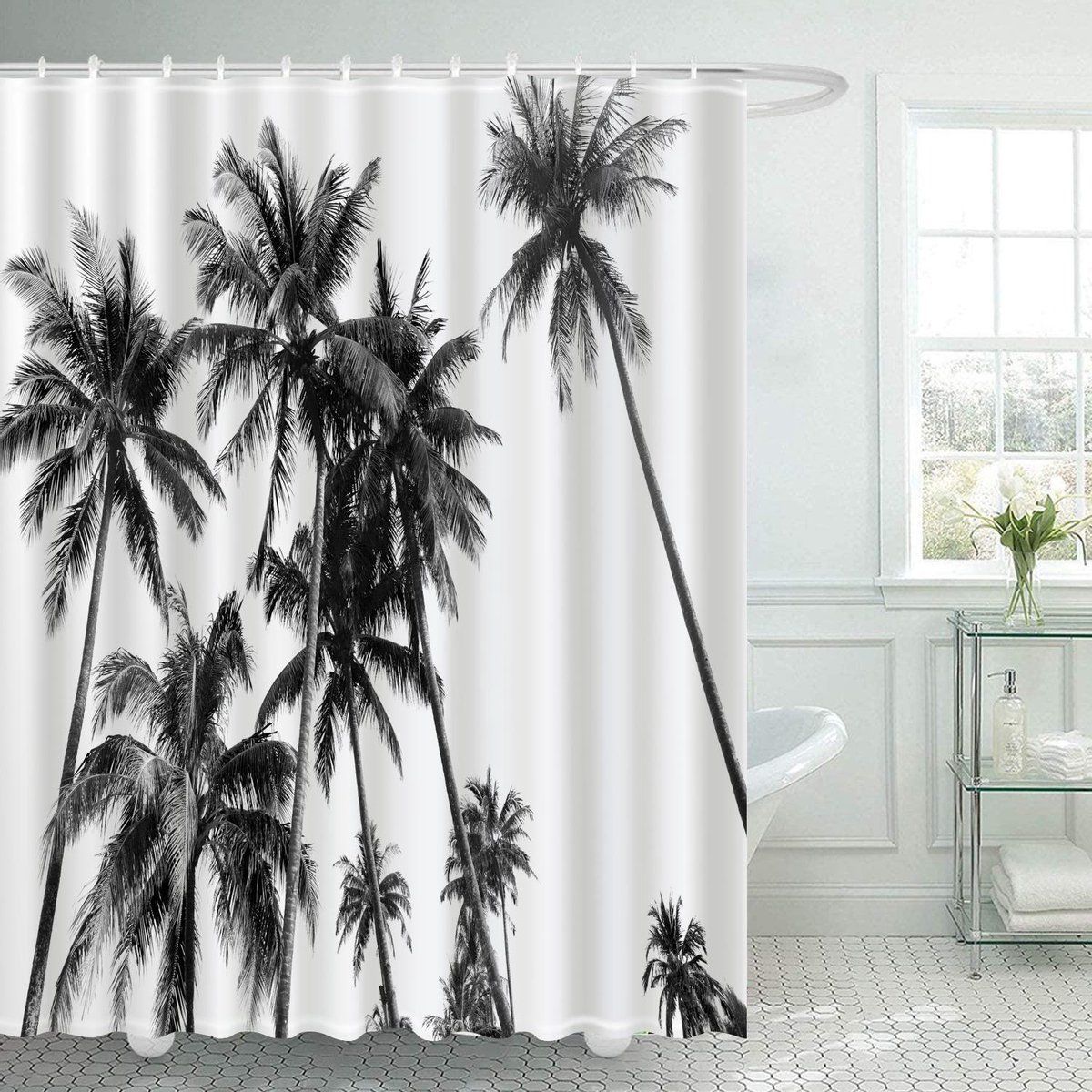 Ulticool Douchegordijn - Strand Natuur Retro Vintage Palmboom Kunst - 180 x 200 cm - Zwart Wit