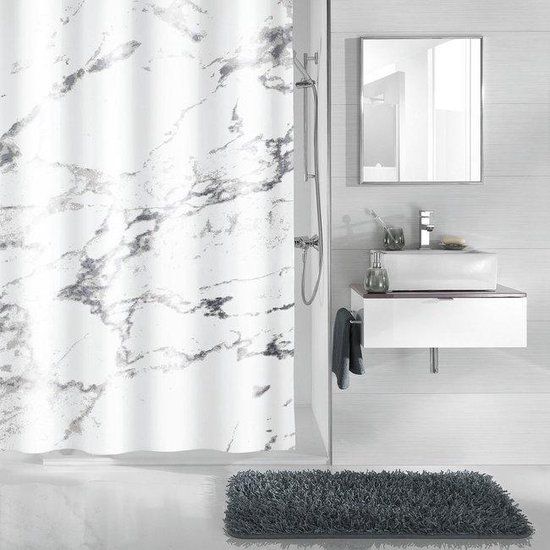Relaxdays Douche rolgordijn grijs - douchegordijn bad - plafondmontage - gordijn badkamer