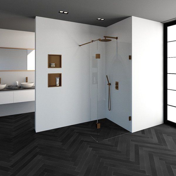 Saniclass Create inloopdouche 90x200cm profielloos met 30cm zijwand koper - Douchemuren