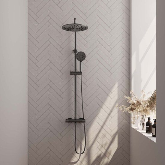 Brauer Gunmetal Carving Regendoucheset Opbouw - 30cm Hoofddouche - Gunmetal