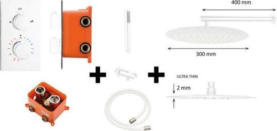 Wiesbaden Caral-Eco Twenty Doucheset - Opbouw Rond - Glans Chroom - Thermostaatkraan - Regendouche - Handdouche