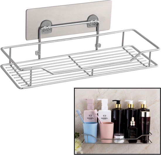 - 1x Zelfklevend rechthoekig Doucherek - Ophangbaar Badrek / Douche rek - Hangend Badkamerrekje - Douchemandje - Doucherekjes geschikt voor Muur / Wand Bevestiging - Montage zonder Boren en Schroeven - Roestvrij Aluminium - Decopatent®