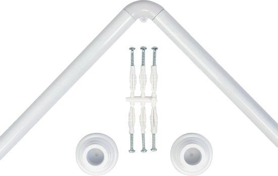 - 2x douchegordijnstang 80 cm, Ø 20mm, 1x koppelstuk Ø 20mm, Bevestigingsmaterialen, Gebruiksaanwijzing
