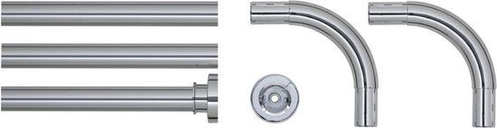 BAOYOUNI Gebogen douchegordijnstang, zonder boren, spanstang voor douchegordijn, telescoopstang van roestvrij staal, gordijnroede, roestbestendig, voor in de badkamer, 95,5 x 95,5 cm, ivoor