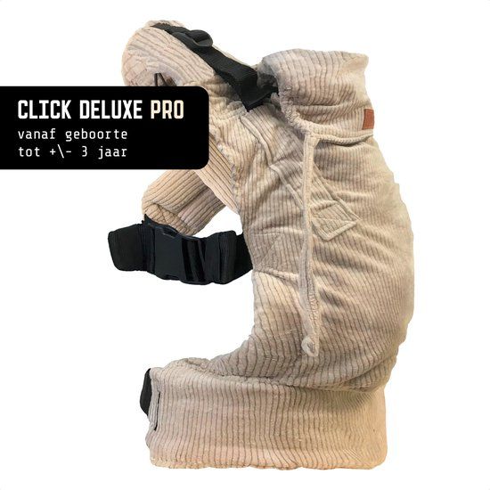 De Click Carrier Deluxe heeft een stevige foam buikband en een handig slaapkapje. Een koordje in de nek zorgt voor optimale nekondersteuning. Ook heeft de draagzak een verstelbaar rugpand, zodat hij een perfecte pasvorm heeft voor pasgeborenen, maar ook voor grotere kinderen. De banden zijn mooi weg te werken door middel van de elastiekjes aan de uiteinden. De los bijgeleverde voetsteuntjes zorgen voor een ergonomische M-positie bij de grotere kinderen. Je kunt de Click Carrier Deluxe eenvoudig en zonder hulp om doen.