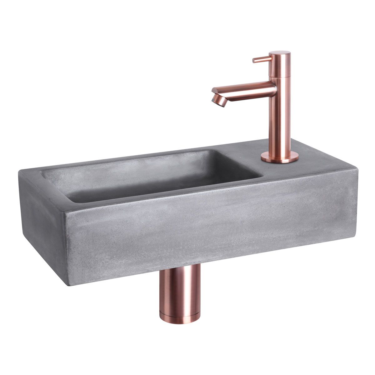 Differnz Fonteinset Ravo Rechthoek 38.5x18.5x9 Beton Donkergrijs Geborsteld Koper - Drinkfonteintjes