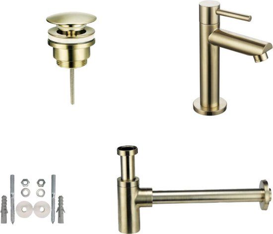 Sani Royal Toiletkraan set met afvoer en design sifon geborsteld goud - Drinkfonteintjes