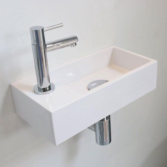 INK Versus fontein Polystone links met kraangat 9x36x18cm Glans wit kopen? Bestel dan dit product van het kwalitatieve merk INK!