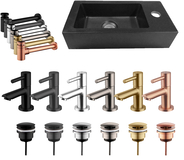 Ink Fonteinset Versus Rechthoek Links 36x18x9cm Quartz Zwart Toiletkraan Sifon Plug Glans Chroom