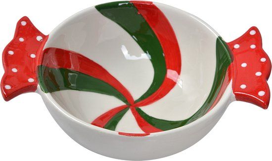 Clayre & Eef Soepkom 300 ml Rood Groen Keramiek Serveerkom - Drinkglazensets