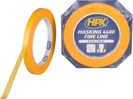 De HPX 4400 Fine Line is een hoogwaardige afplaktape ideaal voor het maskeren van scherpe kanten. Deze tape kan dienen als fine line tape voor schilder- en laktoepassingen in de autosector. De oplosmiddelbestendige tape hecht goed op metaal, glas, kunststoffen en rubber. Bovendien is dit product UV-bestendig en op de meeste ondergronden zonder lijmresten weer schoon te verwijderen tot vier maanden na toepassing.