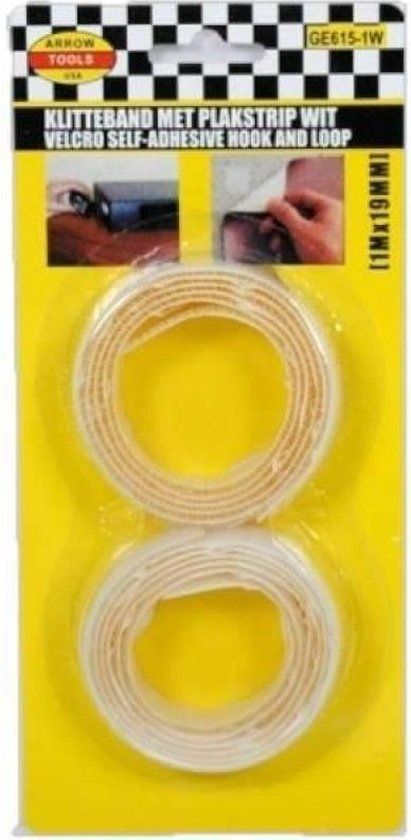 Benson Klittenband, 2 rollen. Wit klittenband welke je kunt opplakken door middel van de plakranden. De lengte per rol klittenband is 100 cm. De rollen zijn 2 cm breed.