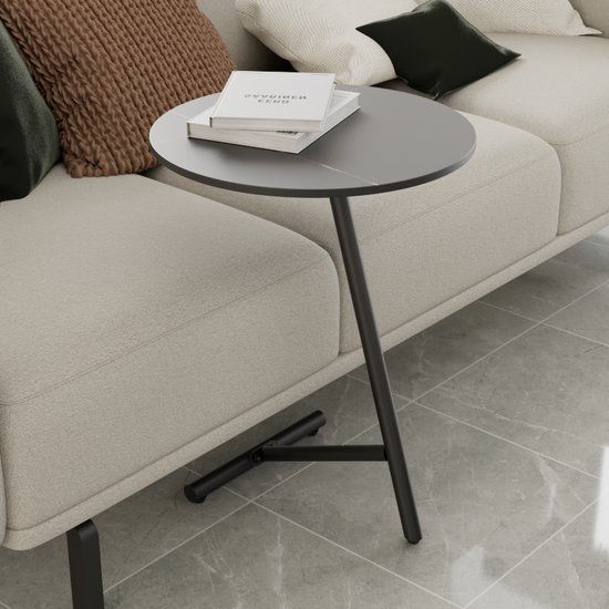 Ronde Bijzettafel - Zwart/Grijs - Marmeren Tafelblad - Metaal Onderstel - Eettafels