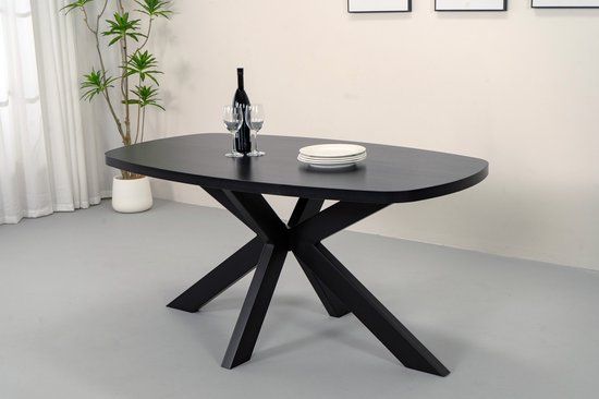 Lizzely Garden & Living Eettafel Leco deens ovaal 160cm zwart melamine ovale tafel eetkamer