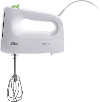 De MultiMix 1 handmixer is eenvoudig te bedienen met een knop die bovenop het handvat zit. Dit zorgt voor een snelle en eenvoudige voorbereiding voor al je bakprojecten. Deze handmixer beschikt over 4 verschillende snelheden en een turbo stand. De handmixer is eenvoudig schoon te maken en beschikt over vaatwasserbestendige onderdelen. Kijk hiervoor in de handleiding. Geniet van een snelle en eenvoudige bereiding met 450 watt vermogen tot je beschikking.