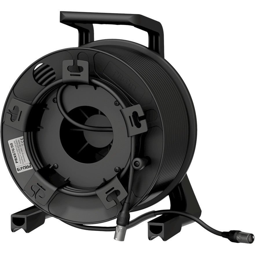 In de Prime Series van Procab vind je het neusje van de zalm op kabelgebied. Niet alleen door het gebruik van uitstekende kabels, maar doorgaans ook de toepassing van Neutrik connectoren. Een goed voorbeeld hiervan zijn de PRX676 haspels, die zijn voorzien van True Outdoor Protection (TOP) etherCON-connectoren. Dat betekent dat de metalen etherCON behuizing van de RJ45-connectoren is voorzien van een extra sealing, waardoor ze waterdicht zijn (mits gekoppeld aan een TOP-chassisdeel). Daarnaast levert de kabel topprestaties op het gebied van data-overdracht, met een CAT6a-indeling ondersteunt de kabel 10GBase-T gigabit netwerken. Deze variant heeft een lengte van 50 meter, waarvan 5 meter is bevestigd op de voorzetflens.