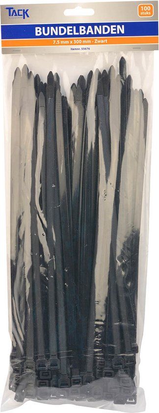 Zwarte Tyraps 7.5mm x 300mm - 100 stuks - Elektrische bedrading