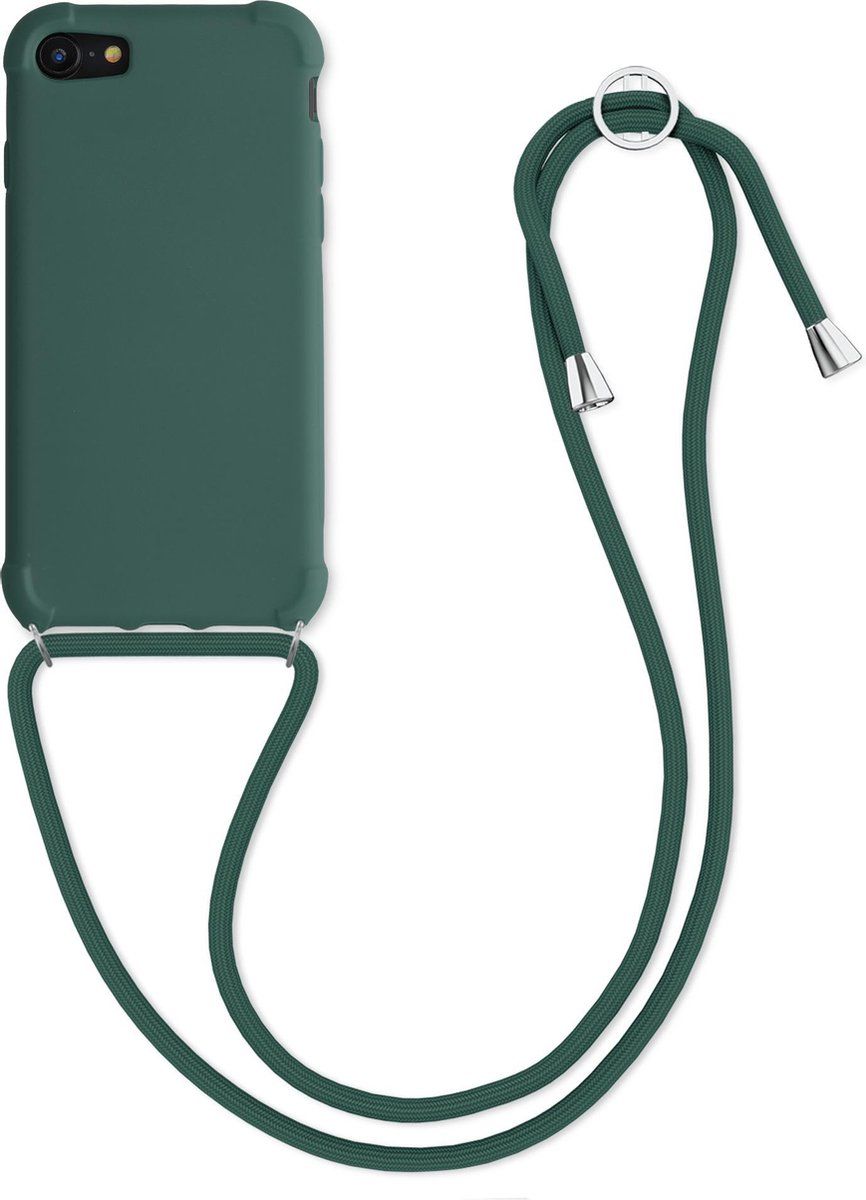 kwmobile hoesje voor Apple iPhone 7 / 8 / SE (2020) - beschermhoes van siliconen met hangkoord - donkergroen - Elektrische componenten