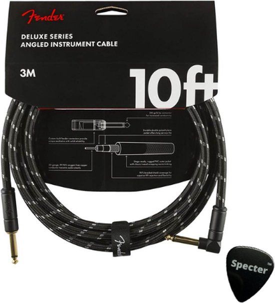 Professionele Fender gitaarkabel 3Meter met Specter plectrum. Met een haakse plug.
