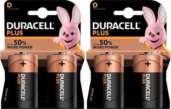Duracell D Plus batterijen - Set van 4 - LR20 - Alkaline