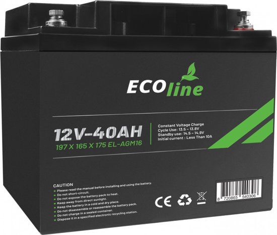 EcoLine AGM 12V 40AH 40000mAh VRLA Deep Cycle Battery - Batterijen