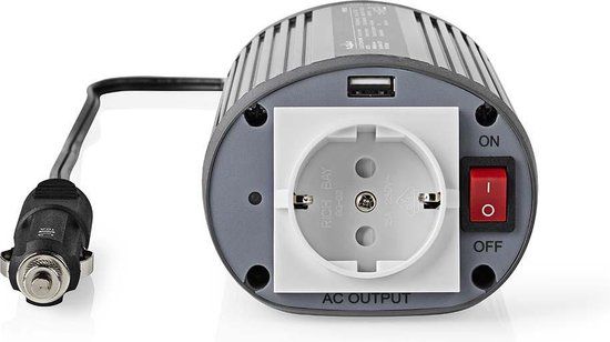 Nedis Omvormer - 150W - 12V DC / 230V AC - Gemodificeerde Sinusgolf - Zilver - Spanningsomzetters