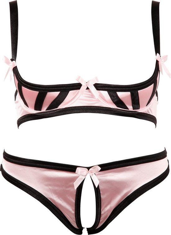 Deze Cottelli Collection half open roze bh set is ideaal voor wie op zoek is naar een uniek en sexy stuk lingerie. Het is een set in maat 85 B/L, waardoor het geschikt is voor mensen met een middelgrote tot grote buste. De half open bh geeft een spannende en sensuele look. Deze stijl is tevens aantrekkelijk voor degene die wel ondersteuning willen, maar ook een beetje lichaam willen laten zien.