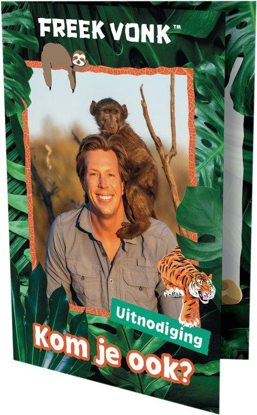 6 Stijlvolle uitnodigingskaarten met daarop Freek Vonk afgebeeld en de tekst: 'Kom je ook?'. Inclusief enveloppen een mooie uitnodiging voor een gaaf feestje!