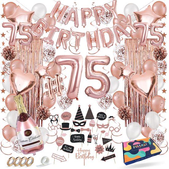 75 jaar, wat gaat de tijd toch snel! Vier dit jaar je mooie leeftijd extra goed met de unieke decoratie set van Fissaly®. In deze set zit alles inbegrepen om je verjaardag een succes te maken en een onvergetelijke dag te beleven!