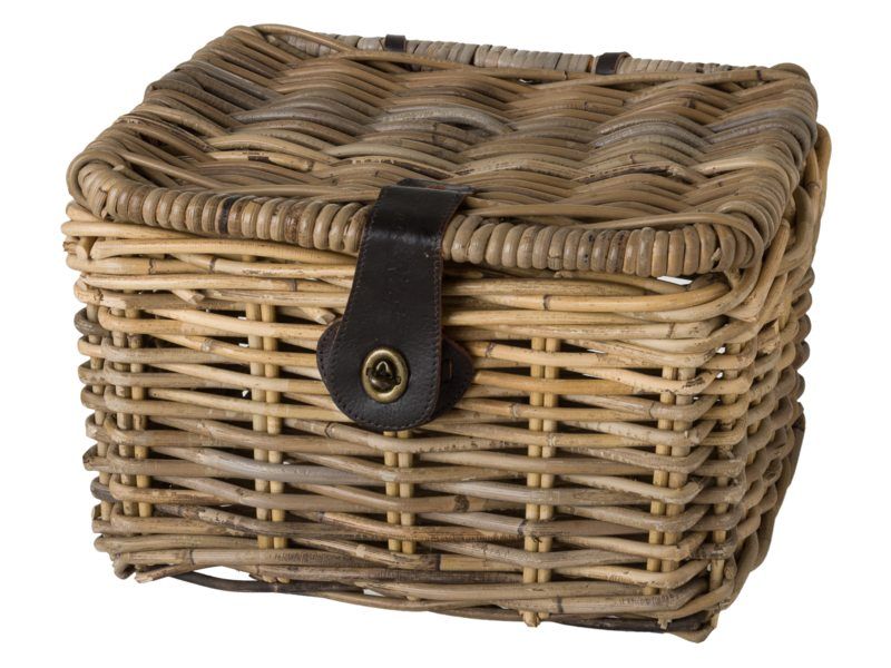 Onze handgemaakte rotan fietsmand met klep, met zijn stevige handvatten en weefpatroon, geeft je fiets een robuuste natuurlijke uitstraling en biedt uiteraard genoeg draagruimte voor je boodschappen of andere bagage.