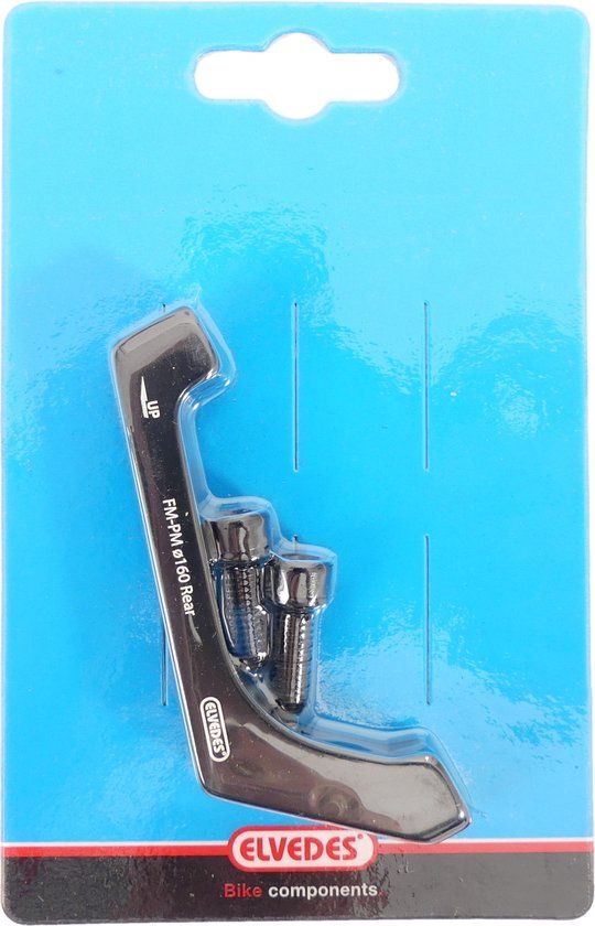 Remklauw montage adapter van Elvedes, geschikt voor de montage van een remklauw met Flat Mount bevestiging aan een achterbrug met Post Mount montage in combinatie met een Ø160 mm remschijf.
