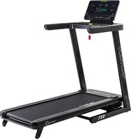 De Tunturi Competence T40 is een hoogwaardige loopband, geschikt voor beginnende sporters die waarde hechten aan comfort en functionaliteit. Deze loopband beschikt over automatische hellingshoekinstelling die tot 12% reikt, een functie die je uitdaging op maat aanbiedt. Hij heeft de mogelijkheid voor intervaltraining en biedt snelheden van 1 tot 16 km/h. Dankzij handgrepen met hartslagcontactsensoren is het makkelijk om je progressie te volgen en je hartslag in de gaten te houden. Een borstband voor hartslagmeting zit ook bij de levering inbegrepen. Tevens is deze loopband van een BMI-meter voorzien. Opvallend zijn handige functies zoals de geïntegreerde houder voor smartphone of tablet, de bidonhouder en de opbergmogelijkheid. De Tunturi Competence T40 kan eenvoudig verticaal worden opgeborgen dankzij de transportwieltjes. Met een stabiel loopvlak van 42 cm breedte en 125 cm lengte, is deze loopband ook geschikt voor mensen die minder stapzekerheid hebben. Hij heeft een maximaal gebruikersgewicht van 120 kg. Verder is de leuningen een pluspunt voor veiligheid en het LED-scherm met verlicht display draagt bij aan gebruiksgemak. Het design is strak en modern, uitgevoerd in de kleur zwart.