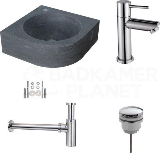 Sani Royal Natuursteen Fonteinset Rione - 30x30cm - Incl. Kraan, Afvoer & Sifon - Fonteinen