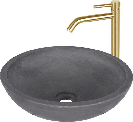 Differnz Ravano Fonteinset - Beton Donkergrijs - Mat Goud - Hoge Gebogen Kraan - Fonteinen