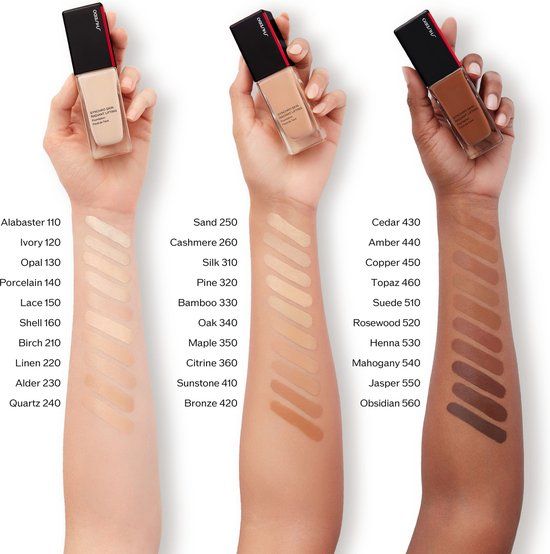 SHISEIDO SYNCHRO SKIN RADIANT LIFTING FoundationBlijft tot 24 uur mooi* zitten. Onberispelijke finish.Bij langdurig gebruik wordt de huid steviger en zichtbaar gelift. Deze foundation blijft tot wel 24 uur* lang zitten, laat de huid stalen in elk licht en hydrateert de huid 24 uur lang**. Met SPF30 voor bescherming tegen uv-straling.Gemiddelde-tot-volledige, opbouwbare dekkingStralende finish.TECHNOLOGIE: De Light-Adjusting™ technologie en skincare ingrediënten zoals arganolie en microkristallen pakken de tekenen van huidveroudering, hyperpigmentatie en droogte aan voor een stralende teint.HET WERKT!TESTRESULTATEN• 95% van de vrouwen is van mening dat de foundation hun huid direct gelijkmatiger maakt****• 93% van de vrouwen is van mening dat de foundation voor een gladde finish op hun huid zorgt****• 93% van de vrouwen is van mening dat de foundation hun huid laat stralen in verschillende lichtinvallen.****• 89% van de vrouwen is van mening dat de foundation zorgt voor een meer gelifte en stevigere huid****• 90% van de vrouwen is van mening dat de foundation fijne lijntjes en rimpels gladder en minder zichtbaar maakt.****• 89% van de vrouwen is van mening dat de foundation poriën minder zichtbaar maakt en een ongelijkmatige teint tegengaat.****ROUTINEOntdek een onberispelijke teint in drie gemakkelijke stappen:1. Start met de SYNCHRO SKIN Soft Blurring PRIMER voor een gladde huid2. Breng de SYNCHRO SKIN RADIANT LIFTING Foundation aan voor een onberispelijke en stralende finish.3. Gebruik de SYNCHRO SKIN SELF-REFRESHING Concealer om de teint te perfectioneren.*Klinisch getest bij 31 vrouwen.**Instrumentele test met 26 proefpersonen.***Consumententest met 100 vrouwen.