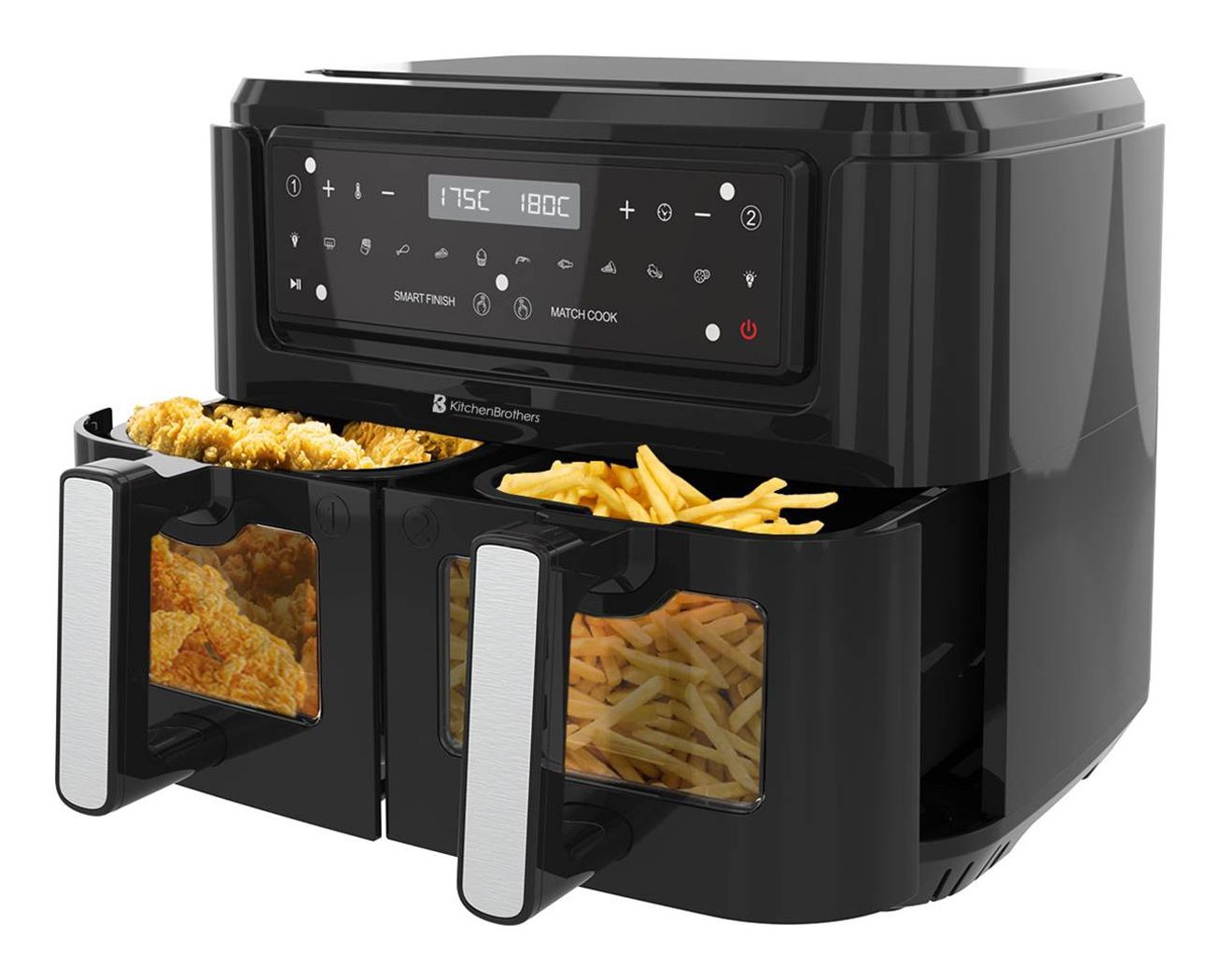 KitchenBrothers Dubbele Airfryer - 9L - 2400W - Heteluchtfriteuse - Zwart - Frituurpan