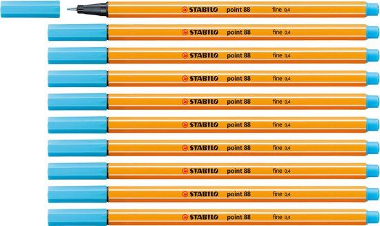 STABILO point 88 Fineliner - Azuur Blauw - 0.4mm - 10 stuks - Gelpennen