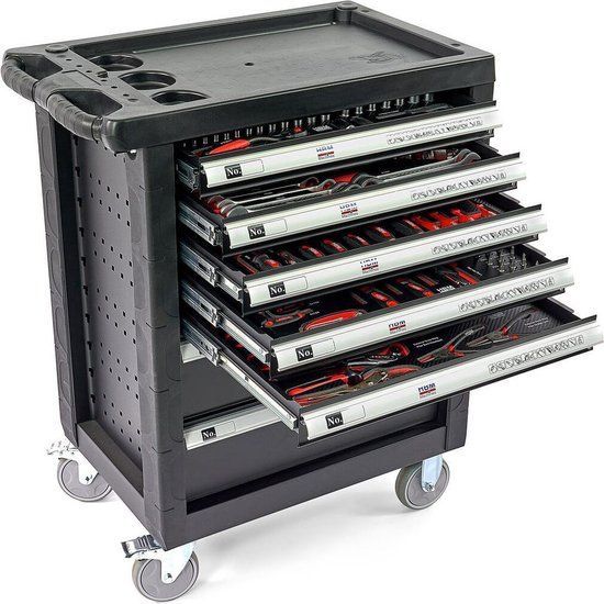Elke klusser heeft behoefte aan één centrale plaats voor het belangrijkste gereedschap. Dat is precies wat deze gereedschapswagen biedt. De efficiënte opbouw maakt het mogelijk om zelfs tientallen tools overzichtelijk te bewaren en te verplaatsen. Opruimen en werken gaan zo hand in hand. Dit maakt werken een stuk aangenamer maar ook efficiënter, zowel voor recreatieve klussers als vakmensen die hun werk goed willen doen.