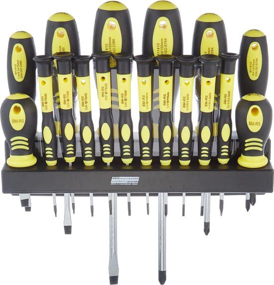 Brüder Mannesmann Schroevendraaierset - 18-delig - Magnetisch - Met Wandhouder - Gereedschapssets voor monteurs