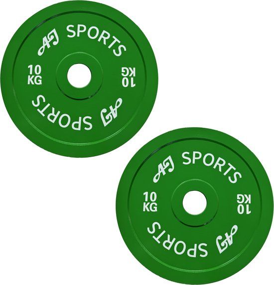 AJ-Sports Halterschijven 10 kg - 2 Stuks - 50 mm - Groen - Gietijzer - Gewichtsplaten