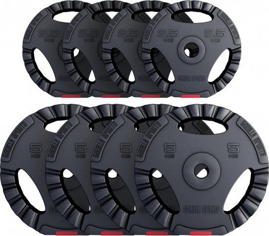 VergelijkenVergelijkenGorilla Sports Halterschijven Set - 30 kg (4 x 5 & 4 x 2,5 kg) - Gripper Kunststof - 30 mm€ 64,995 tot 6 dagenBekijk meer informatieBeste dealsAmazon Marketplace€ 64,99Bekijk meer informatieBekijk product