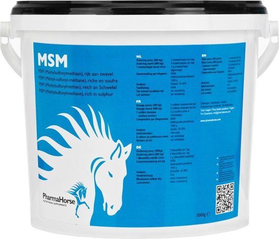 - PharmaHorse MSM kunt u vermengen met de dagelijkse voeding van uw paard of pony.