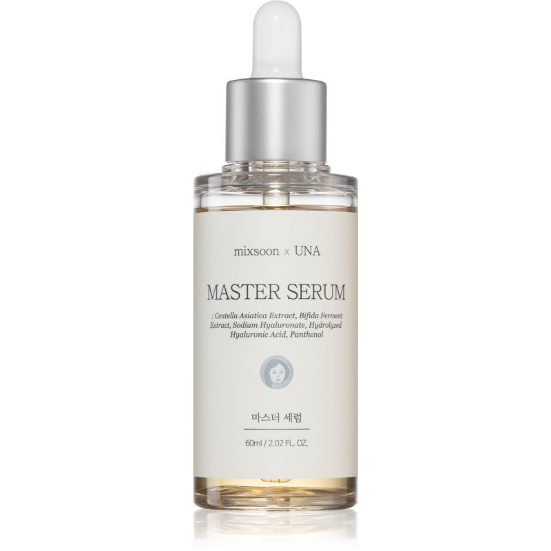 mixsoon x UNA Master Serum, 60 ml, Gezichtsserum voor Vrouwen , Het huidserum mixsoon x UNA Master Serum is een preparaat met een hoog gehalte aan werkzame stoffen. Hierdoor geeft het je huid de meest luxe verzorging. Kenmerken: hydrateert en voedt effectief geeft de huid compactheid regenereert de huid en voorkomt irritatie beschermt de huid herstelt de elasticiteit van de huid Ingrediënten: ongeparfumeerd veganistisch product Hoe te gebruiken: Klop een geschikte hoeveelheid serum zacht met je vingertoppen in de schone huid. Breng aan op het gezicht, de hals en het decolleté.
