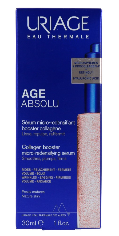 Uriage Age Absolu Collageen Booster Serum is een perfecte oplossing voor alle tekenen van huidveroudering. Dit innovatieve serum werkt op verschillende niveaus, waardoor uw huid steviger, compacter en stralender wordt. De dubbele collageenboost stimuleert de aanmaak van collageen en de procollageenpeptide (4) zorgt voor een liftend effect. De ingekapselde water-in-olie technologie zorgt voor een frisse en comfortabele textuur. Uriage Age Absolu Collageen Booster Serum:Dubbele collageen boost voor een stevigere en compactere huidWerkt op 10 tekenen van huidverouderingIngekapselde water-in-olie technologieFrisse en comfortabele textuurVoor de rijpere huidLiftend effectHoe te gebruiken?1. Breng 's ochtends en/of 's avonds aan op een gereinigde huid van gezicht, hals en decolleté2. Masseer zachtjes in met opwaartse bewegingen3. Laat het serum volledig intrekken4. Vervolg met uw gebruikelijke dag- of nachtcrème5. Voor optimaal resultaat dagelijks gebruiken
