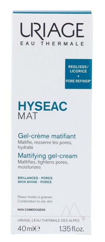 Uriage Hyséac Mattifying Gel-Cream (40ml) is speciaal ontwikkeld voor de gecombineerde en onzuivere huid en biedt een drievoudige werking: matterend, hydraterend en samentrekkend. Deze lichtgewicht gel-crème formule vermindert de talgproductie en verfijnt de huidtextuur, waardoor uw huid zacht, egaal en stralend blijft.Uriage Hyséac Mattifying Gel-Cream:Reguleert de talgproductie en vermindert de vettigheid van de huidVerkleint de poriën en verfijnt de huidtextuurBeschermt, kalmeert en hydrateert de huid diepHeeft een lichte, niet-vette textuur die de huid niet afsluitKlinische resultaten:Herstelt beschadigde handen door uitdroging: 92%* tevredenKlinisch onderzoek onder toezicht van dermatologen bij 39 personen, bij 2x daags aanbrengen. 28 dagen lang, door middel van een vragenlijst.Actieve bestanddelen van Uriage Hyséac Mattifying Gel-CreamUriage Thermal WaterPoly-2P patentManuka honingHoe Uriage Hyséac Mattifying Gel-Cream te gebruiken?1.Reinig uw gezicht grondig en dep het droog.2.Breng 's ochtends en 's avonds een dunne laag Uriage Hyseac Matterende Verzorging aan op uw gezicht.3.Masseer zachtjes in met ronddraaiende bewegingen totdat de crème volledig is opgenomen door de huid.